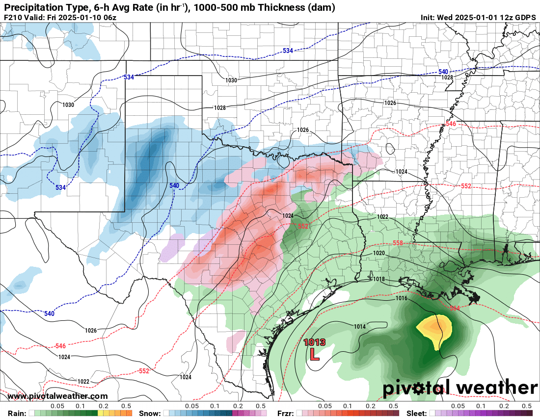 Yeah, it’s only snowed 3 times here that I can remember my entire life lolBrazoriatx979 wrote: ↑Wed Jan 01, 2025 11:05 amUsually takes an act of God to get that 540 line anywhere remotely close to hereCpv17 wrote: ↑Wed Jan 01, 2025 11:02 amLike I mentioned earlier, the closer that 540 line can get to us the better off we’ll be. Another thing is that globals often don’t see the true shallow nature of the Artic air and they usually come in a few degrees too warm.Brazoriatx979 wrote: ↑Wed Jan 01, 2025 10:58 am 12z cmc...that gulf low will be a key factor. As long as it's cold enough