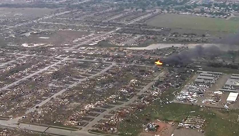 Massive devastating tornado has impacted the towns of Moore and Newcastle, OK in the last hour just south of OKC metro area. It appears the tornado may have been upwards of 1.5-2 miles wide and has caused near total devastation to several subdivisions.