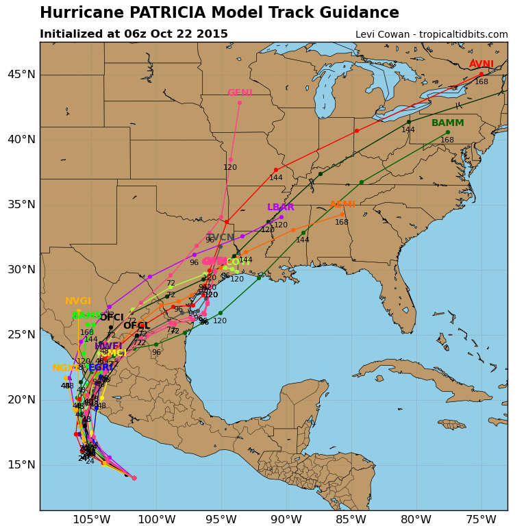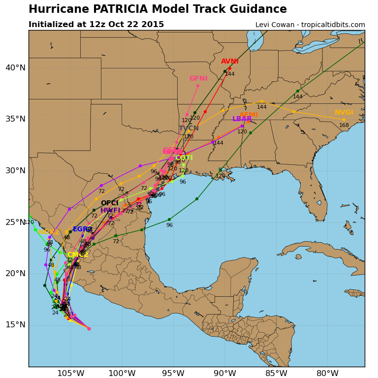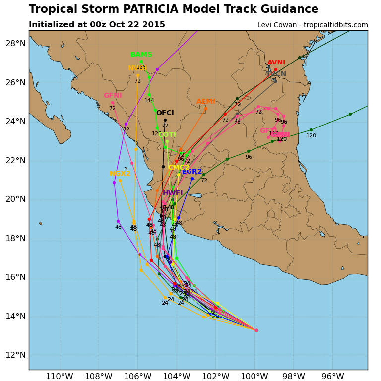 Hurricane Patricia is likely a Major Hurricane at this time. The latest intensity guidance suggest it may become a Category 4 Hurricane before making landfall along the West Coast of Mexico sometime on Friday.