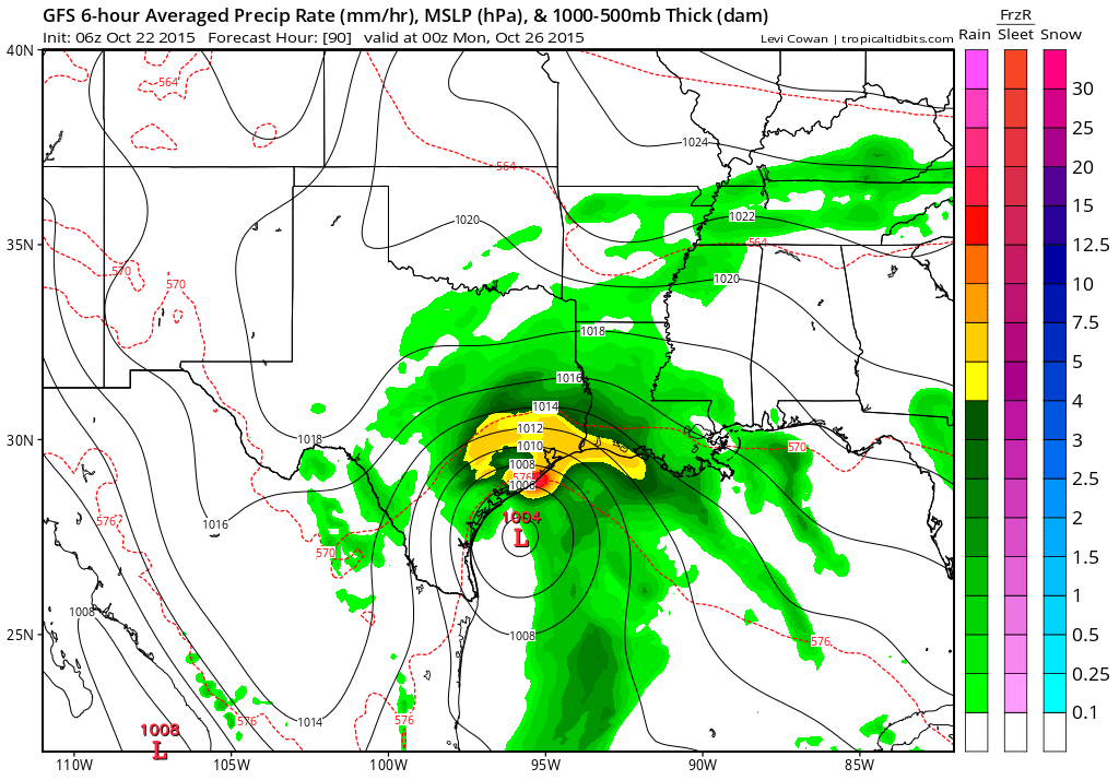 00z GFS suggests plenty of rain across the state with parts of northern central Texas seeing 10+ inches. SE Texas would also be impacted more as the coastal trough/remnants of Patricia slowly move just off the coast.