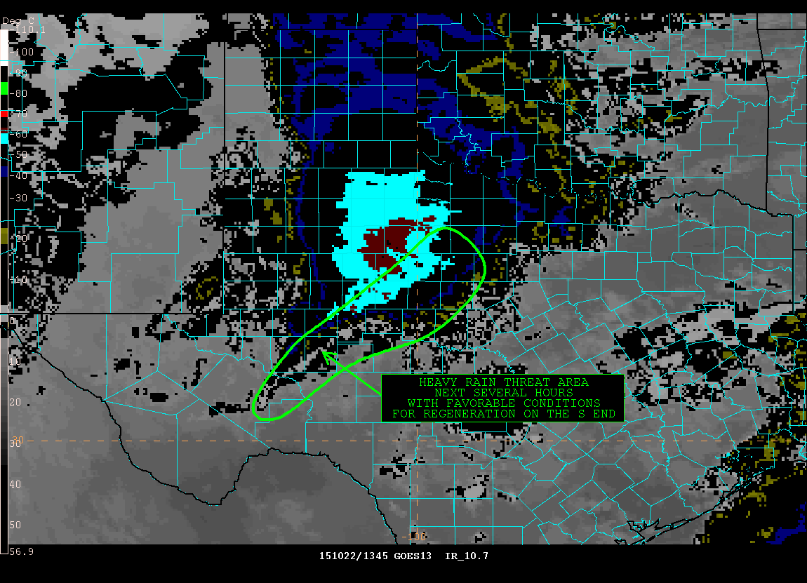 While these two areas appear the current primed target for the maximum rainfall…these areas have been shifting around some and the overall pattern will support excessive rainfall over a large portion of TX so I would not put much confidence in the exact areas of heavy rainfall at this time.