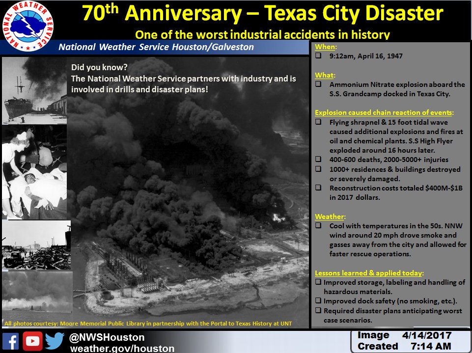 Easter Sunday marks the 70th Anniversary of one of the worst Industrial Accidents we have ever seen here in SE Texas. My Mom and Grandmother lost friends in the Texas City Disaster and I am sure that others on this Board can share experiences of their families on that fateful day, April 16, 1947.