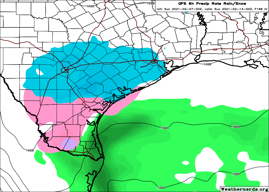 I'm not looking for record breaking cold...just enough cold to support a little frozen precip if we get it..you can keep the extreme stuffKHOU BLake wrote: ↑Sat Feb 06, 2021 6:03 pmAre you sure it's the GFS? I just looked at the 18z and the lowest I could find was 25 for Houston. I mean I did see 18 degrees for Huntsville and College Station on Sunday morning but I'm not convinced. This arctic airmass just doesn't look all that to me like it once did. We'll get cold but likely nothing memorable. Could change.