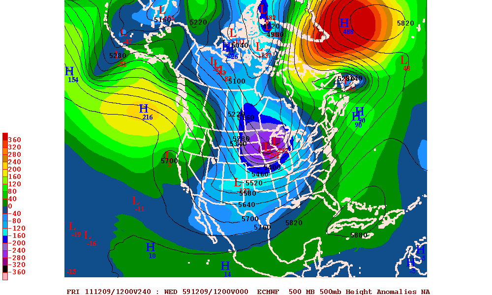 The 12Z Euro trended slightly with what the GFS and Canadian offered today in suggesting a bit of shearing out of the SW upper air disturbance before dropping another 5H (upper low) in the Desert SW. Also of note, the Euro is beginning to come around to the idea of colder weather dropping S behind the front and setting the stage for another possible freeze event early next week. This is all subject to change, but this does bode well with a little better agreement in model world in regards to what could happen as we look ahead. It still appears a Winter Storm is shaping up for the Central/Southern Rockies into the Panhandle of TX and points NE over the weekend. We will see…