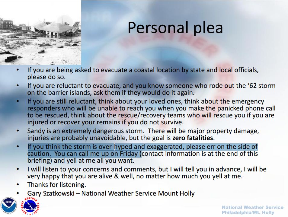 FIRST A NOTE ON THE NWS WARNING STRATEGY FOR SANDY. IN ORDER TO