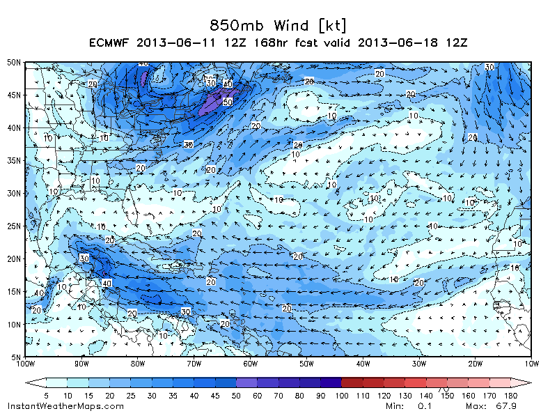 Long range Global models continue to show lowering pressures in the NW Caribbean and SW GOM 8-10 days out along with the pooling of tropical moisture. This is many days out but we could see more tropical development in the days ahead. Take this as a reminder that Hurricane Season 2013 is here and it only takes one. Have your hurricane plan ready just in case its needed later this Summer. I am not so concerned with early season tropical development compared to the Cape Verde storms which are long tracked classic hurricanes. We may see a few this season.