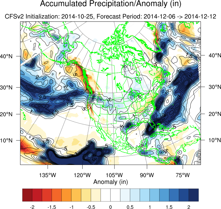 The CFS is not only chilly...but wet. That would also be indicative of a noisy sub tropical jet with potential for Coastal Lows to develop along the NW Gulf Coast which is a pattern we typically see in a weak developing El Nino Pattern across our Region. Again, this is all speculative that far out, but the teleconnection (-Arctic Oscillation/+Pacific North America/-East Pacific Oscillation as well as a +Pacific Decadal Oscillation) indices we look to in long range forecasting are indications we could be heading into an eventful weather pattern to end November into December. We will see.