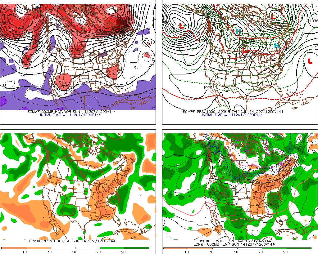 Weak cool front attempts to slide into the region on Saturday, but it is questionable how far south that boundary makes it before it stalls. This will only help to continue the cloudy and damp conditions through the weekend and into early next week. May see increased rain chances again Sunday into Monday with another disturbance aloft moving over the region. No big cold weather outbreaks noted for the next 7-10 days with temperatures running near to above normal for early December.