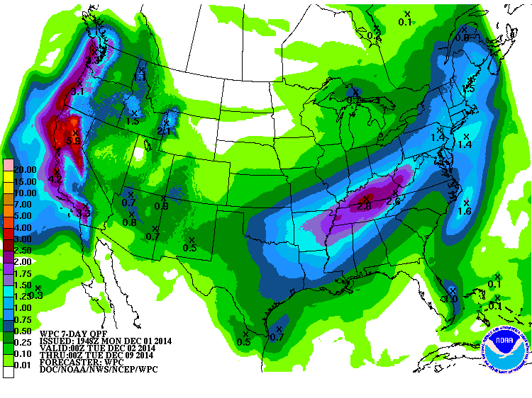 The earliest would likely be near or just beyond Christmas. This pattern does not show any sign of changing other than a quick shot or two of colder air that quickly moves off to the East. That said it does look active with plentiful chances of rain and for those that may have travel plans to the ski areas of New Mexico and Colorado, this active pattern bodes well for snowfall across those ski areas.sambucol wrote:Any idea when our next shot of cold air will be?