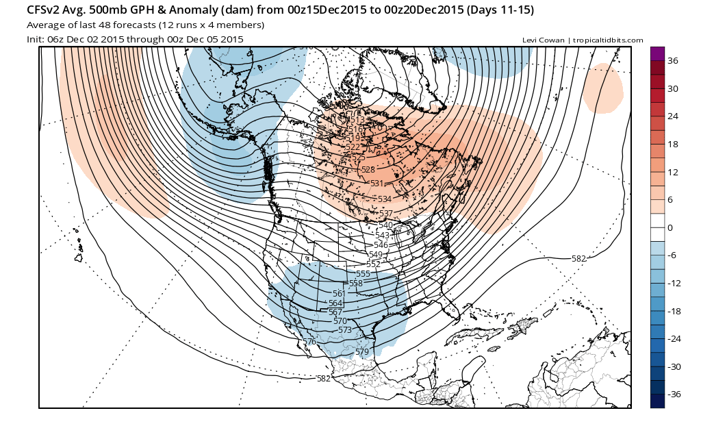 From Dec 1.. "The longer range ECMWF Ensemble mean suggest the potential of a pattern change beginning in about 10 days. Something to keep an eye on the next week or so...