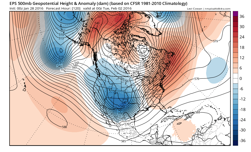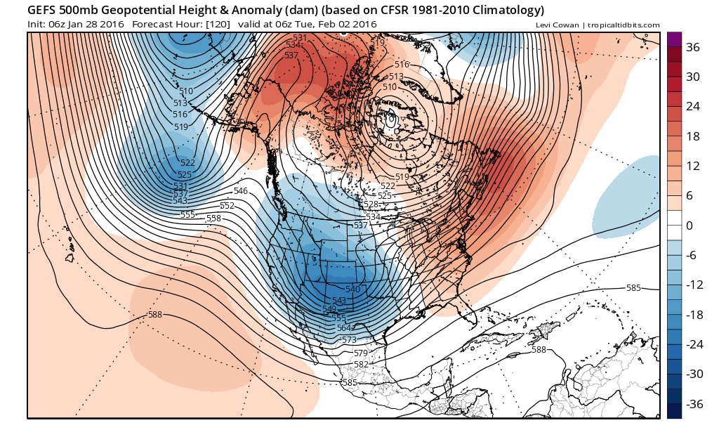 Bastardi's nearly beside himself.srainhoutx wrote:The 12Z guidance continues to advertise a powerful Southern Rockies/Plains storm system early to mid next week. It's looking like a good possibility of much colder air filtering down from Canada arriving Tuesday with temperatures for morning lows in the upper 20's/low 30's likely Thursday and Friday mornings next week. The extended range ensembles are advertising some mighty chilly air settling across North America, East of the Continental Divide around the 9th/11th of February timeframe. There are increasing chances of a Polar Vortex split during that time period suggesting the ' coldest air' across the Northern Hemisphere may be on our side of the World. We will see.