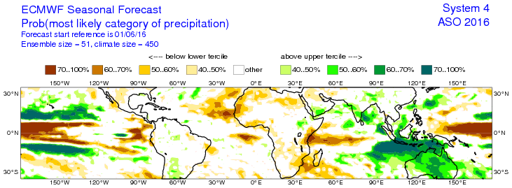 The Long Range Seasonal ECMWF continues to advertise generally lower pressures across the Caribbean Sea and the Gulf of Mexico. The Main Development Region of the Central Atlantic suggests higher pressures meaning less in the way of tropical development across the MDR or less Cape Verde Storms. The Precipitation Outlooks for August/September/October also indicate a favorable pattern with rising air that assists in tropical thunderstorm development particularly across the NW Caribbean and the Gulf. The ENSO Plumes also suggest a weak to potential Moderate La Nino during peak Hurricane Season in our part of the World.