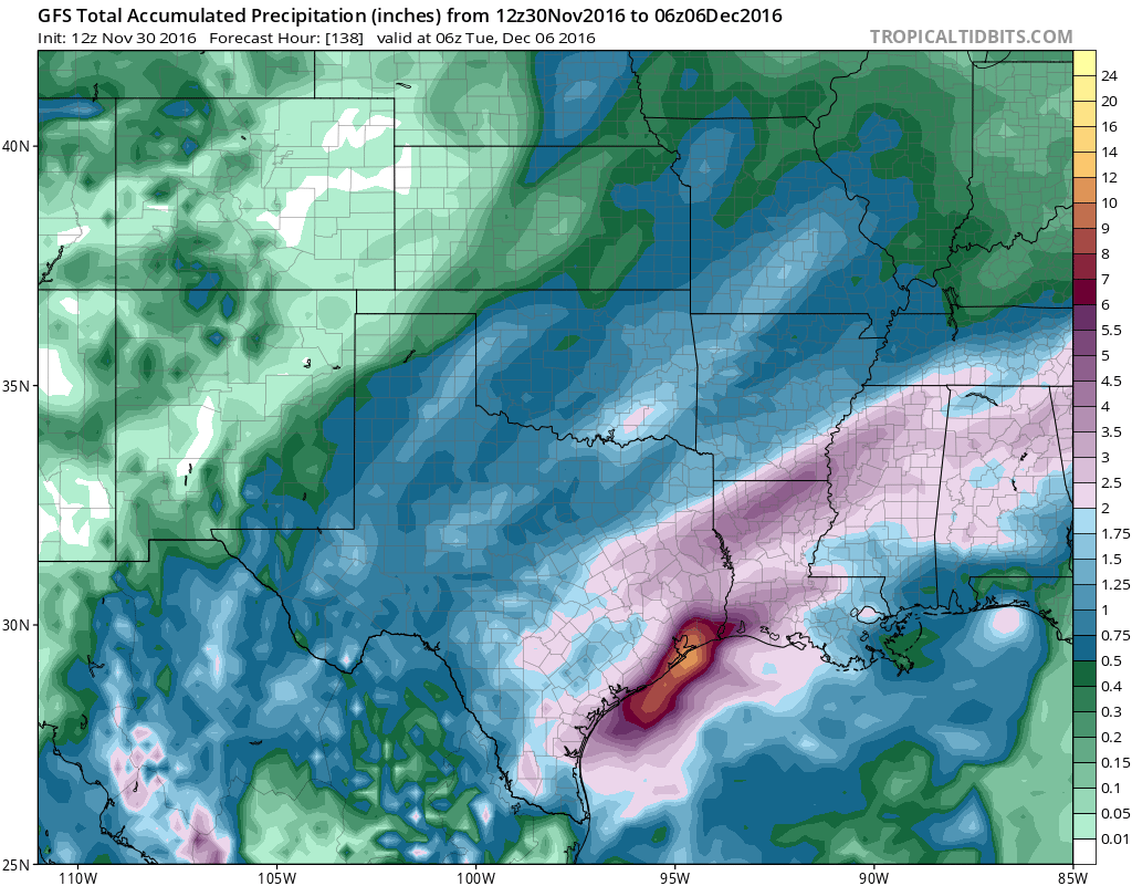 Looks like an active period for SE Texas will occur over the coming weeks. The cutoff low/coastal low combination this coming weekend looks tricky as it will be a battle between the upper dynamics to the west and the coastal low to the east. On multiple occasions we have seen the coastal low "steal" much of the moisture that would make it more inland. As it stands right now I do expect locations along the coast will see highest totals and a relatively sharp gradient will exist as we move inland. With that said, the ECMWF is more encouraging with moisture streaming further inland (less influence from the coastal low) and isolated totals reaching 5-7 inches inland. Overall though much needed rain looks to occur for most across the region.