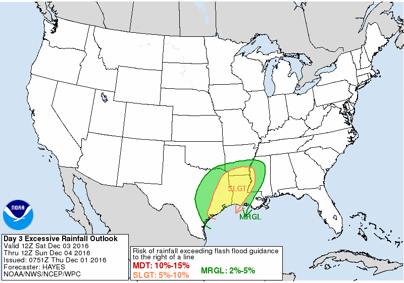 The overnight updated quantitative precipitation forecast and the excessive rainfall outlook suggest we may have some issues across the Eastern half of Texas extending into Louisiana.