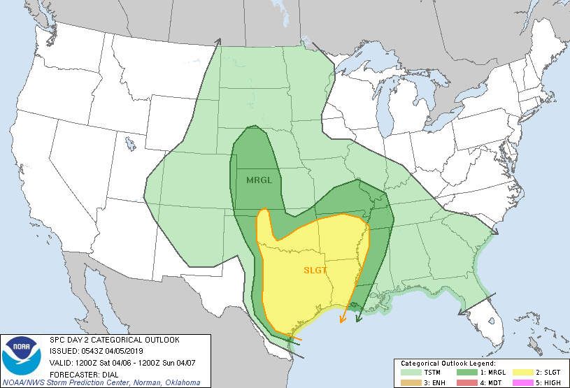 Friday will feature small ridge of high pressure over the area ahead of a much more significant upper level storm system which will impact the state over much of the weekend. An upper level trough will begin to dig into TX late Friday with increasing large scale lift. Moisture will continue to increase and pool over the area with PWS increasing to around 1.5 inches by late Saturday. Fairly impressive low level inflow of 35-45kts from the S/SSW will help to feed moisture into developing storms. Increasing speed and directional wind shear will be in place by Saturday along with decent instability suggesting severe thunderstorms with hail and damaging winds will be possible.