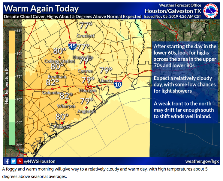 Another warm and partly cloudy Fall day on the way for SE TX.