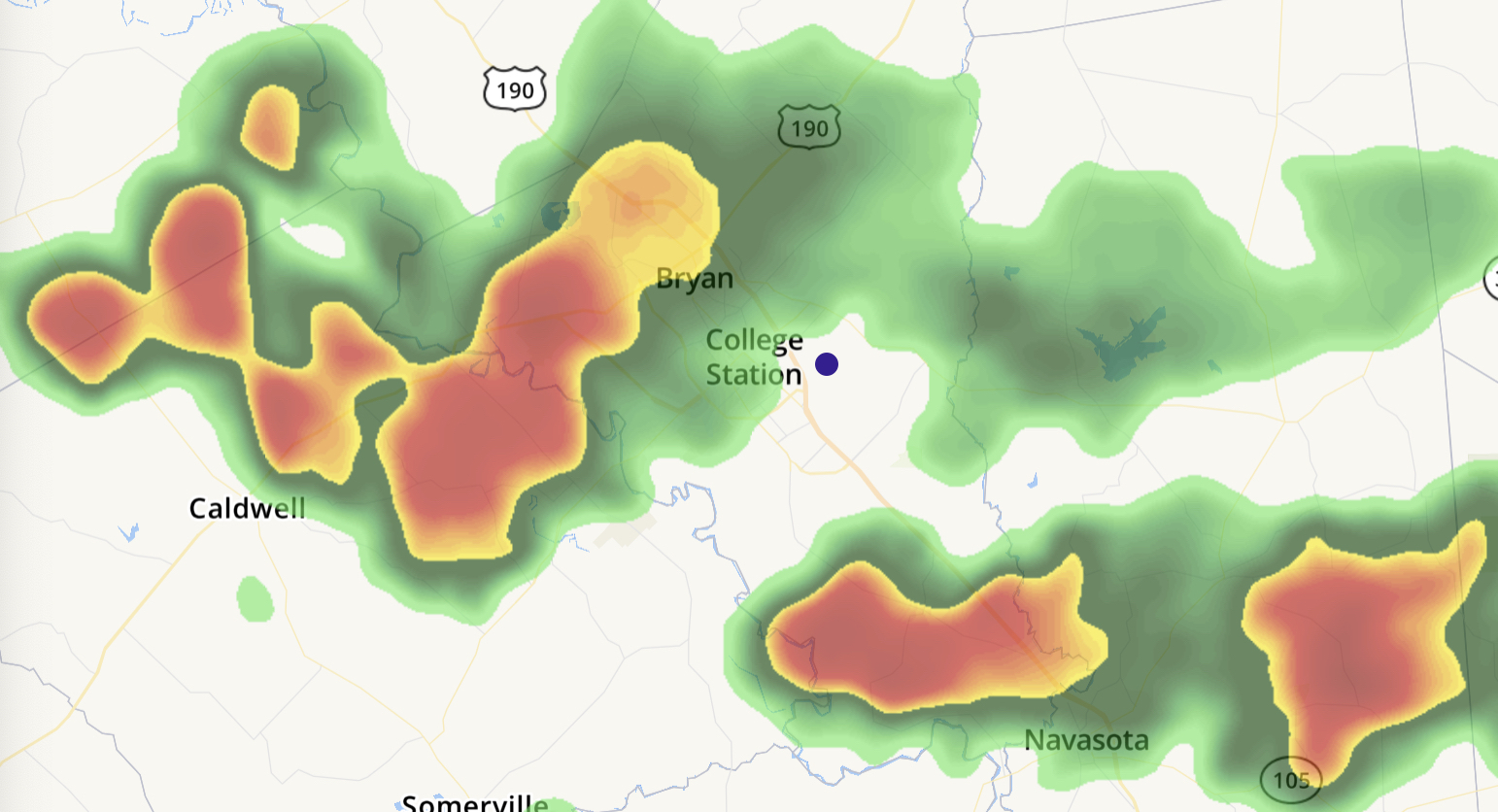 Yeah, we've been getting that northerly flow for about 24 hours. Breezy and some cells drifting down toward B/CS. The last few days are the kind of Texas summer I can live with.