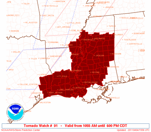Also our neighbors in Far SE TX/SW LA have a new Tornado Watch just issued until 6:00PM.