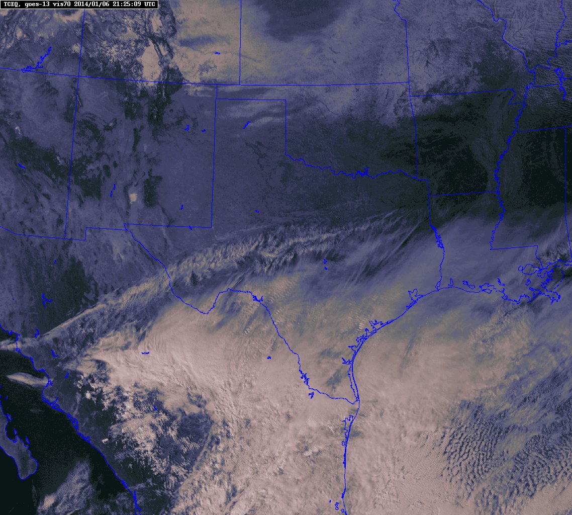 That's a lot of cirrus clouds streaming NE across Texas. Tonight may be overcast, making it not as cold as this morning.