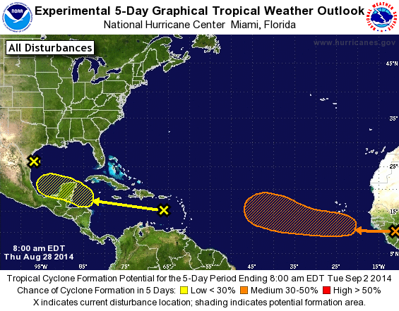 Trough axis begins to push eastward Sunday helping to dry out an extremely moist air mass, but another strong tropical wave will already be approaching from the central Caribbean Sea by this time. This wave is a function of a trade wind burst behind the currently departing Hurricane Cristobal over the NW Atlantic. This trade wind burst is allowing strong surface mass convergence on its leading edge, but currently 30kts of upper level WSW shear is keeping the system from organizing. As the wave/wind burst moves westward toward the western Caribbean Sea upper level conditions appear to become favorable for development. The GFS, GFS Ensembles, and CMC all show a closed low tropical system in the southern Gulf of Mexico/Bay of Campeche early to mid next week. There appears to be enough ridging over the US Gulf coast to keep any tropical system moving WNW or NW toward MX or S TX, but models are starting to point at somewhat of an elongated system with impacts sprawling outward NE from the center well up the TX coast.