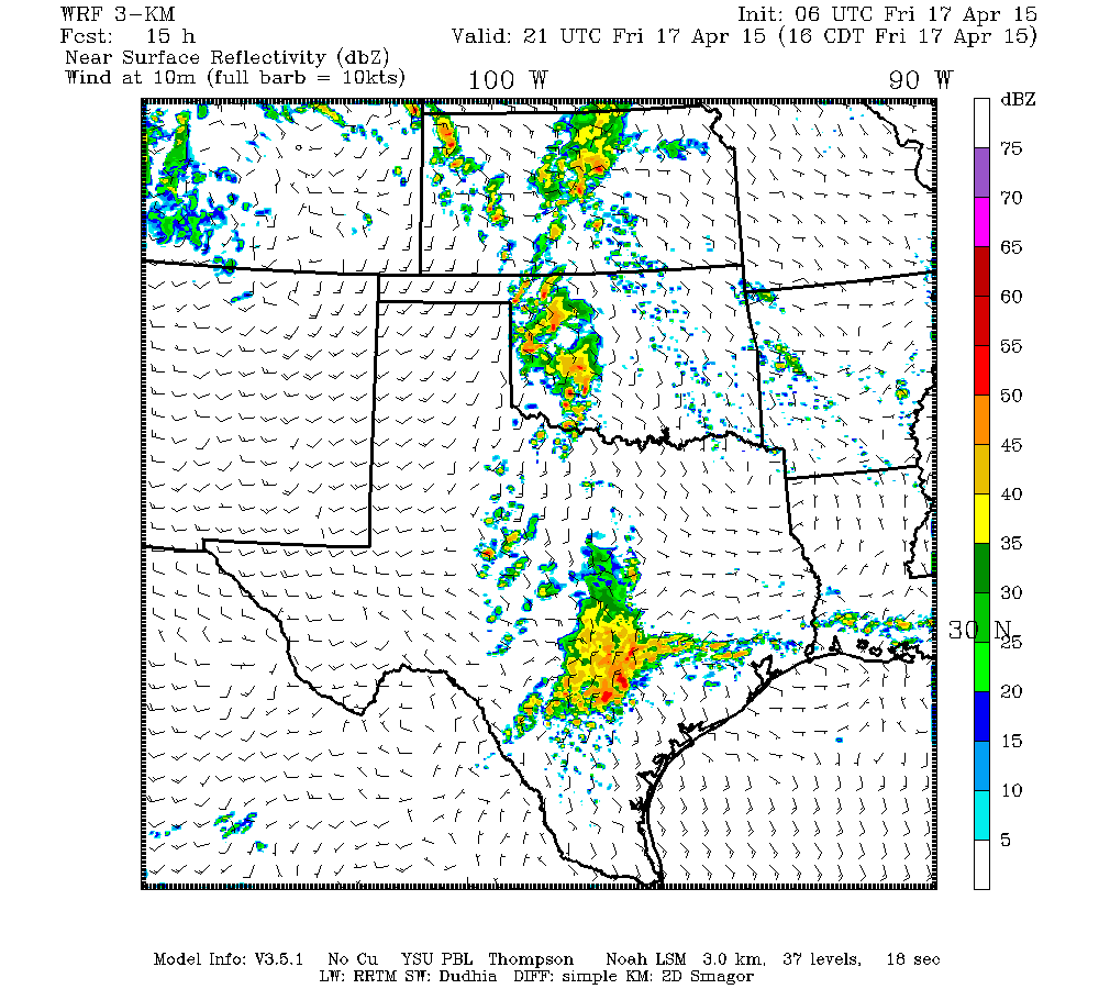 The 12Z Texas Tech WRF has a good handle on the storms developing to our West and suggests training storms will again linger well into the early morning hours after the big Mesoscale Convective System rolls East across the I-10 Corridor. It is a bit worrisome to see a yet another possible MCS developing tomorrow morning to our West suggesting another round of severe weather with very heavy rainfall approaching. Stay Tuned and follow our Texas Weather Board Facebook and twitter social media feeds for all the up to date information!