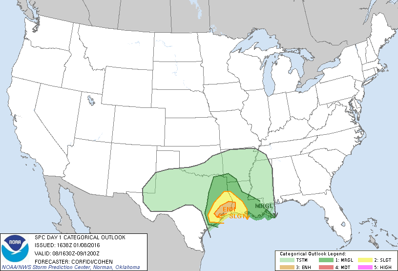 ...THERE IS A SLGT RISK OF SVR TSTMS OVER PARTS OF E TX AND WRN/SRN