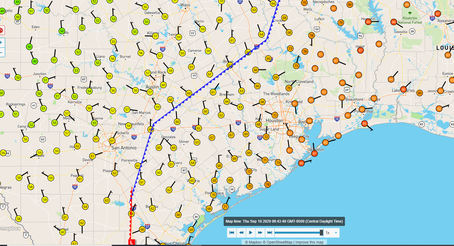 Katy and NW Harris co. are barely on the other side of the front. It probably stalls around downtown.