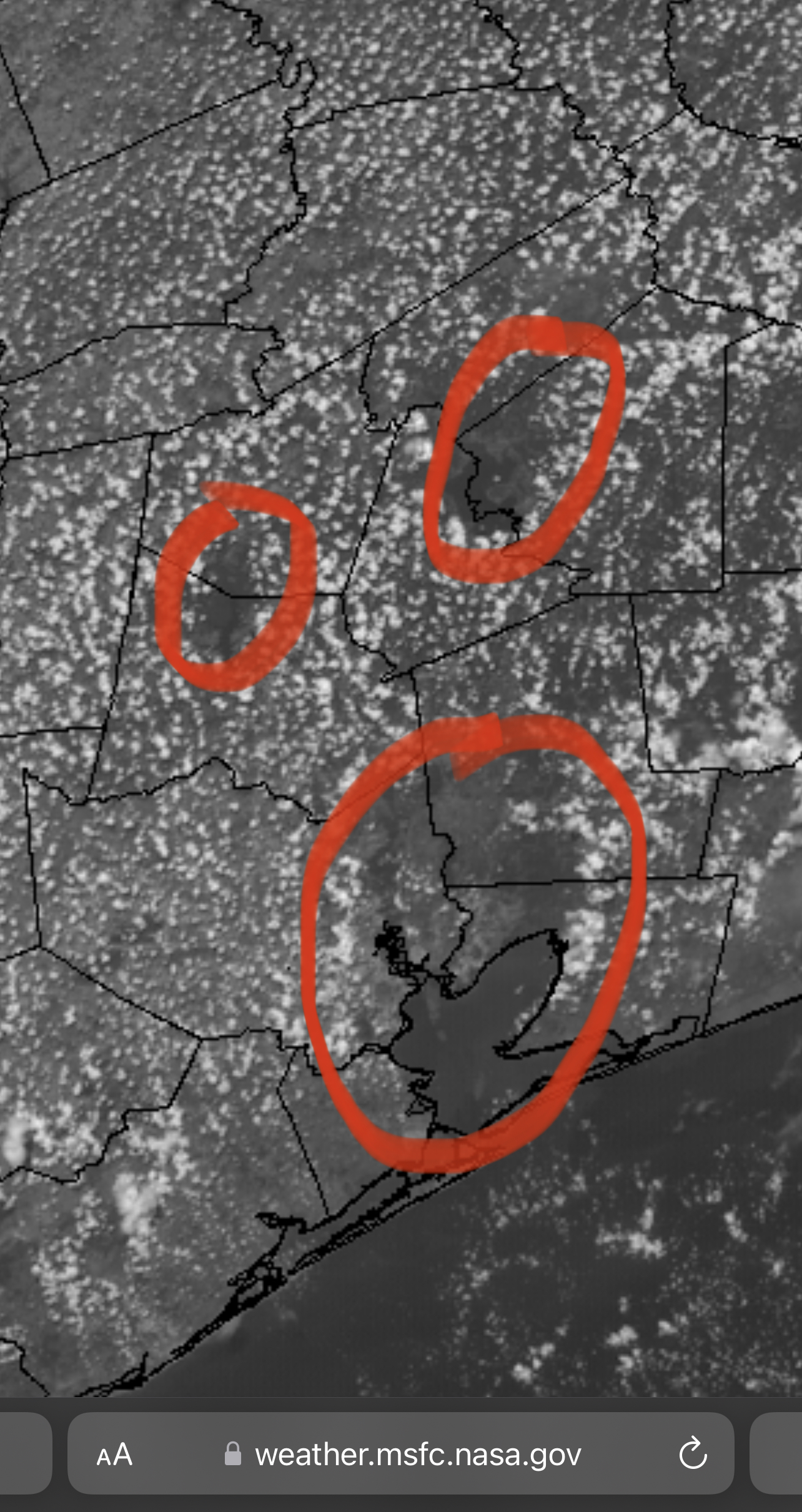 jasons2k wrote: Tue Aug 09, 2022 1:00 pm Look at the lack of cumulus clouds downstream from the lakes and Galveston Bay. This has to be a factor in our local ‘dead zone.’