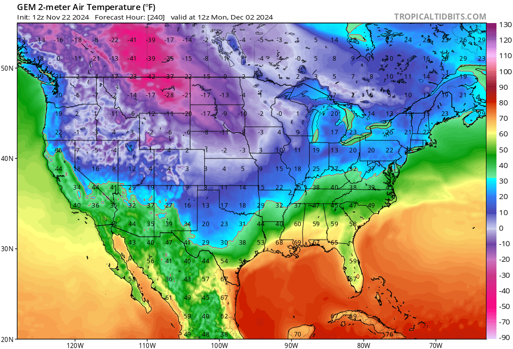 Stratton20 wrote: ↑Sun Nov 24, 2024 1:50 pm biggerbyte thats not true, in fact im expecting the models to continue to correct to the west, the CMC/ ICON/ Euro Aifs and now the Euro dive the arctic sir more to the south, happens every time, models try to frive the Arctic air to the se before eventually correcting back west and south over time, it looks really cold here after thanksgiving