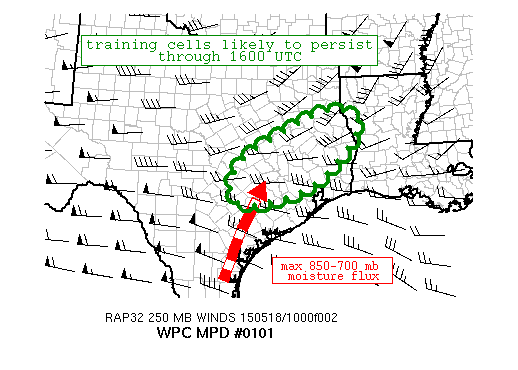 Main forecast challenge over the next several days will be timing thunderstorms and if any heavy to excessive rainfall will occur on already saturated grounds. Have very little confidence on timing of when and where storms will fire. Think the air mass is fairly worked over tonight…so not expecting anything coming out of SW TX where complexes have formed the last few days. Meso models have been hinting at storms developing tomorrow to our NE along a weak frontal zone and moving SSW into the area during the afternoon hours…this seems as much possible as any number of other solutions including storms forming over the area with heating on Monday. Storm motions looks fairly slow on Monday afternoon and evening so excessive rainfall will once again be the main threat. Unfortunately, areas that have been hit the hardest this past week (north of I-10) look to stand the best chance for heavy rainfall on Monday.