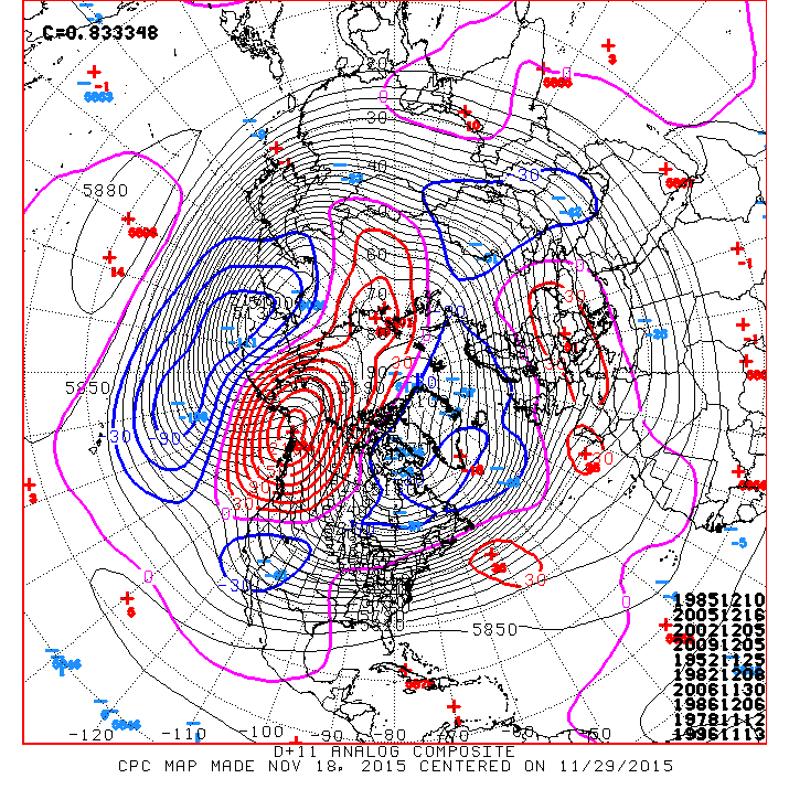 The afternoon Updated Climate Prediction Center Day 11+ Outlook is out. It is interesting to see December 5, 2009 now showing up in the analogs.