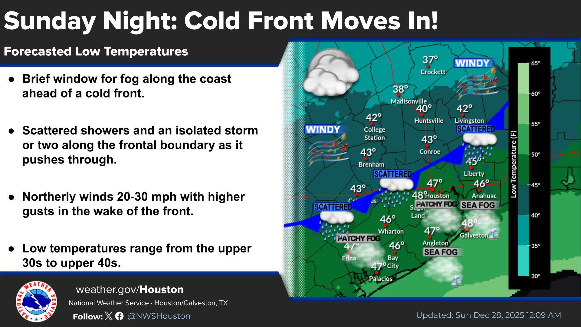 Why weather app must be smoking Crack then. Says nothing about the 30sCpv17 wrote: ↑Sun Dec 28, 2025 12:54 pmLows go from near 70 to in the 30’s. Yeah, that’s not much of a difference at all.Brazoriatx979 wrote: ↑Sun Dec 28, 2025 12:36 pmI was thinking the same thing. Not much of a strong cold front. High of 65 Monday..high of 54 Tuesday...next