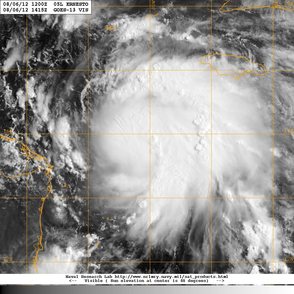 Ernesto is a tad N of the forecast points already. I suspect we have not seen the last of this northerly component before the first landfall near Cancun as well. We will see.
