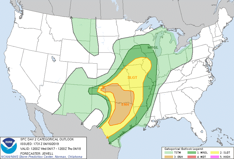 Day 4 (Wednesday 4-17), eastward into the Mississippi Valley region