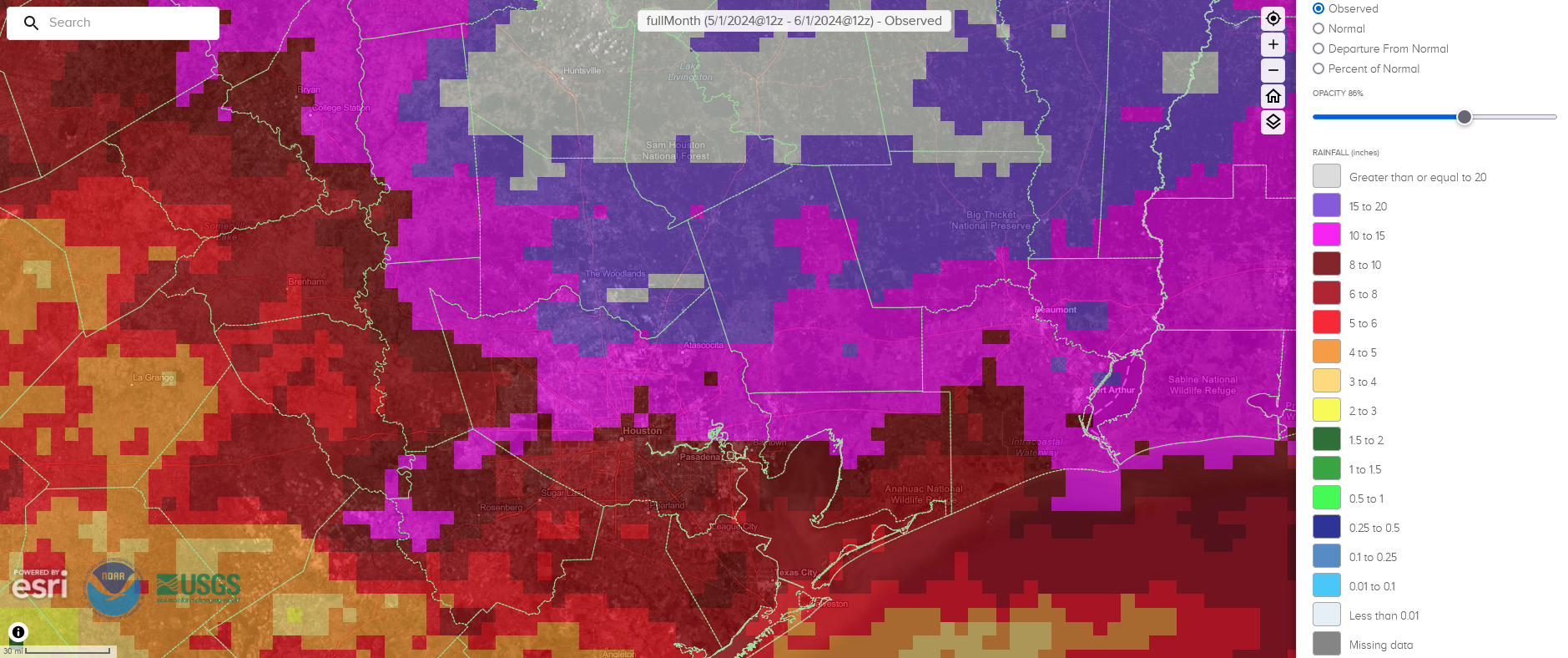 Not just the Golden Triangle metro Houston has received a lot of rain also with many areas of Harris county along and north of I-10 receiving 10-15 inches of rain in May.