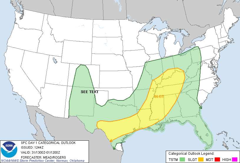 May: Slight Risk Severe Storms Thursday To End The Month