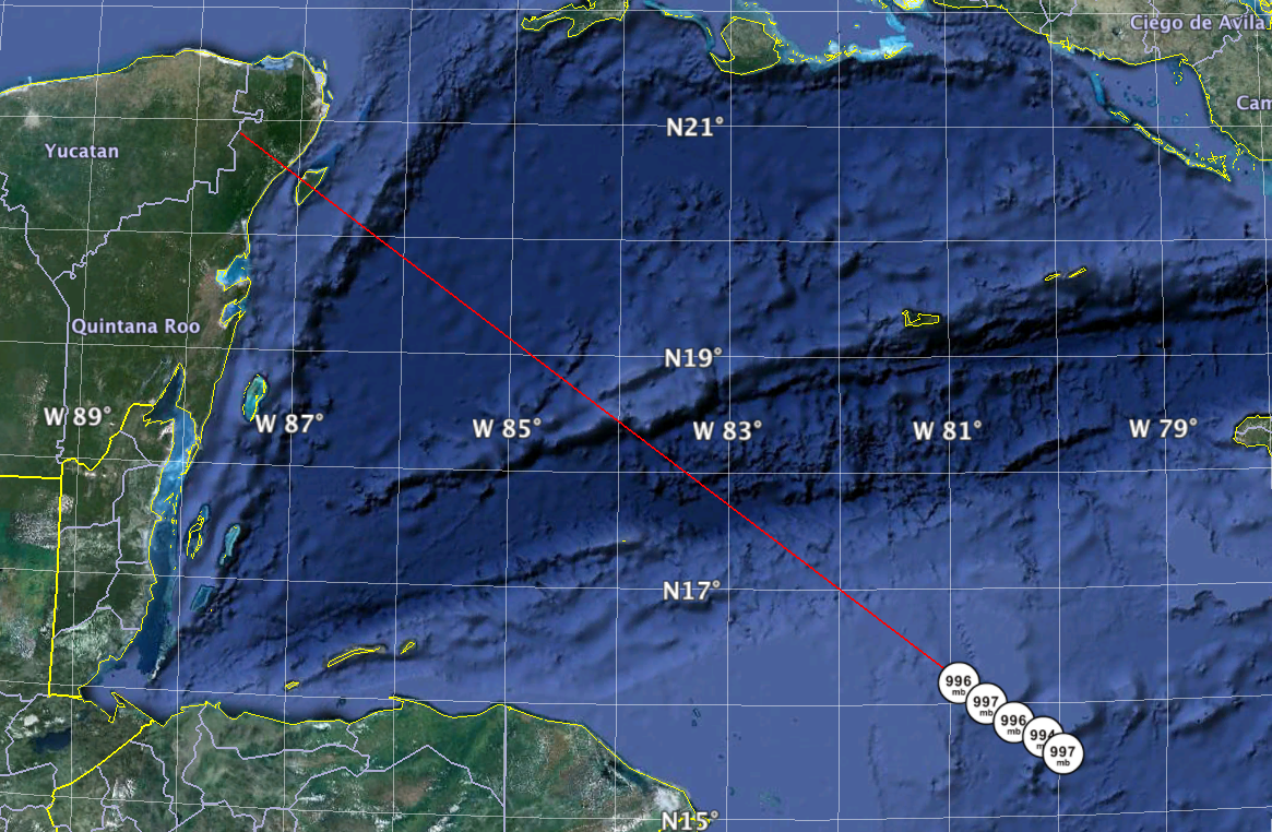 For what it's worth the 12Z Euro was a tad N of Chetumal, MX and a touch stronger than the 00Z run, albeit weaker than what we are seeing today in real time.