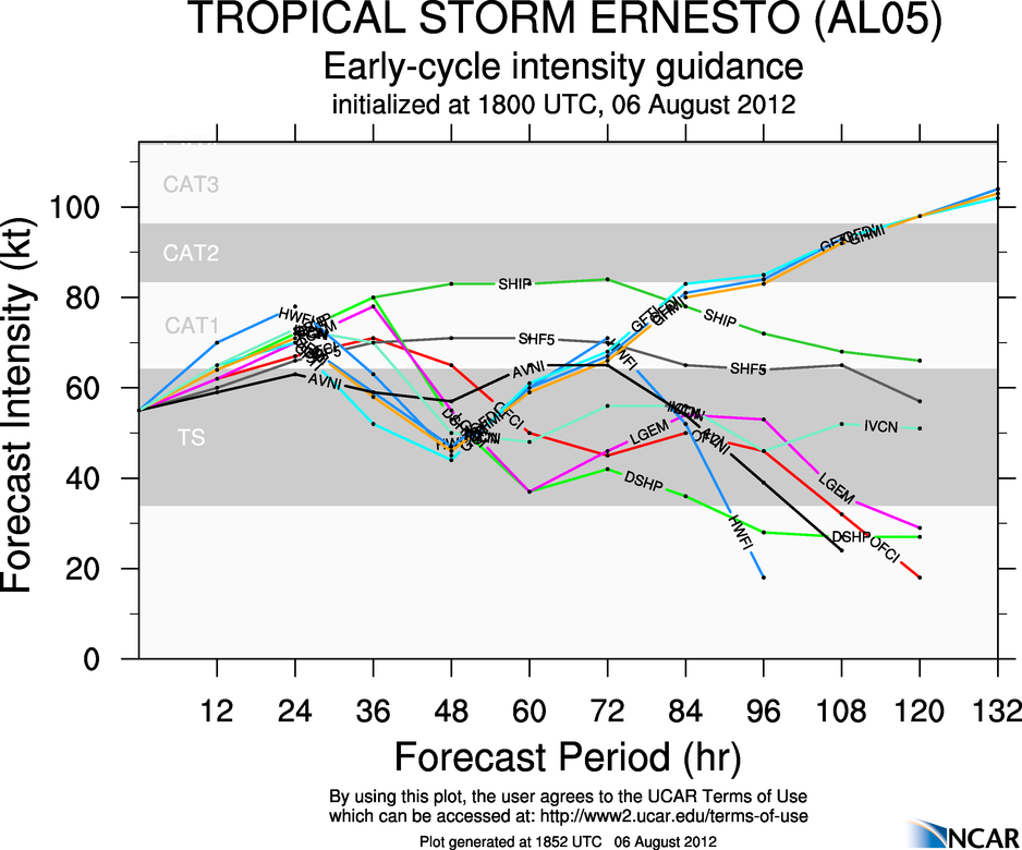 EDIT TO ADD: Also, if you notice, since the NAM model came out this morning, Ernesto has been somewhat following its path than the others - it is moving WNW to NW at the moment...