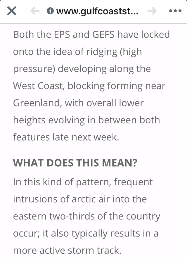 South_Texas_Storms wrote: ↑Thu Jan 10, 2019 5:32 pmThanks, happy to be here!cperk wrote: ↑Wed Jan 09, 2019 6:16 pmSouth Texas Storms glad to have you join us at the WXinfinity forum.South_Texas_Storms wrote: ↑Wed Jan 09, 2019 5:21 pm There is good agreement in the latest long-range models and ensembles that our much anticipated pattern change will be arriving over the next few weeks. Canada will likely get cold in the 6-10 day frame, with potential cross polar flow bringing the cold air down into the U.S. and eventually Texas around or shortly after January 20.