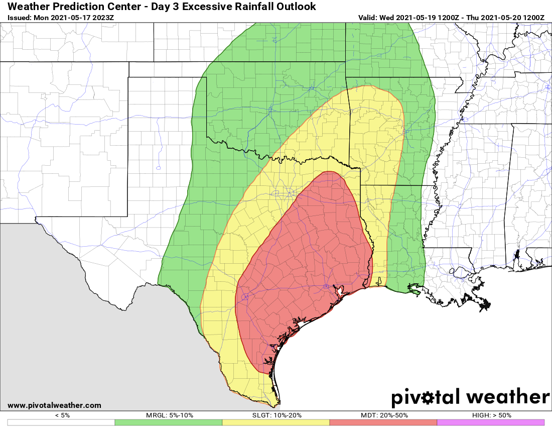 Louisiana. The Marginal Risk extends into west-central Texas, most