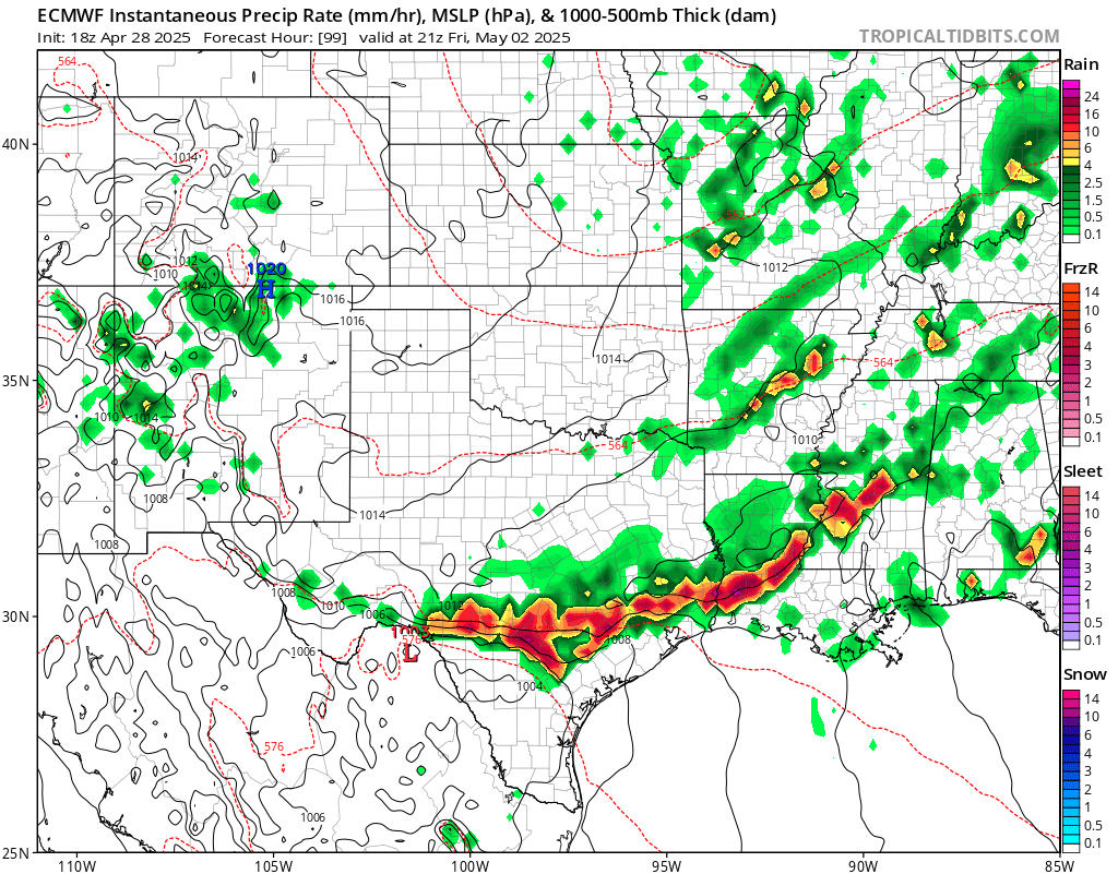 lol After the ULL ejects, the Euro and GFS agree on a FROPA and rain along with it. May 2/3 look a lot more rainy now.