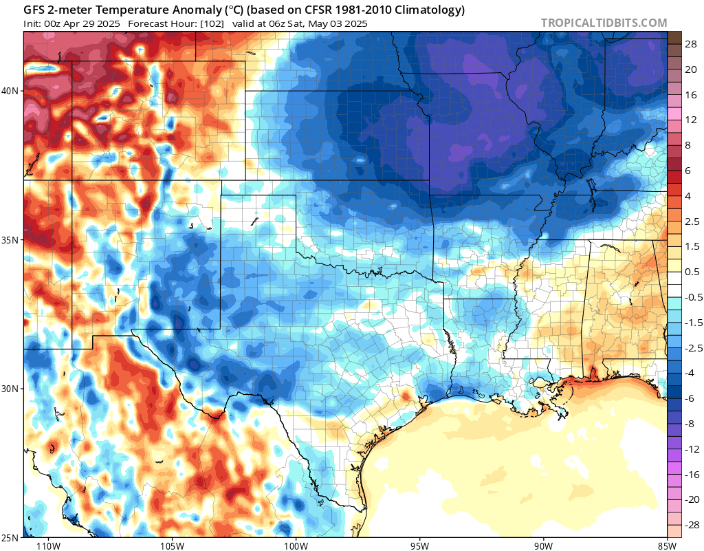 A very active season so far, and we haven’t even seen a real severe weather outbreak yet. The setup the models show around the beginning of May looks interesting. Could be the first big outbreak of the season for the southern plains.