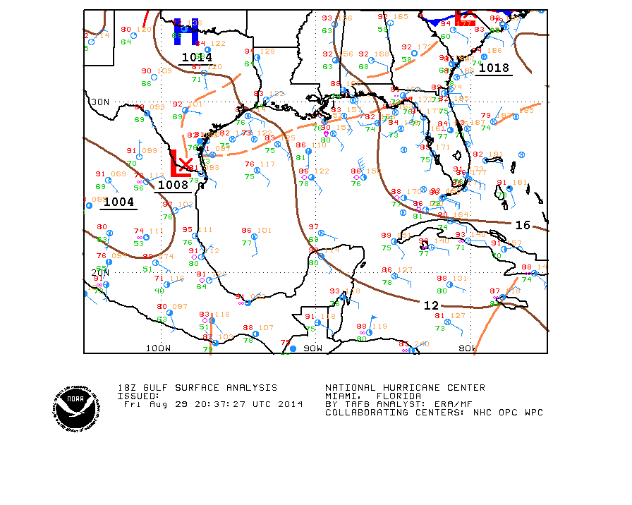 That Ridge of High pressure to the N and typically convection tends to focus along the trough and S over the warm waters. Also this never really developed a 'warm core' or a defined sustainable center. There have been a number of meso vorts spinning up with the convection offshore along the South Texas Coast as well as S of Galveston. Those small little lows tend to also allow convection to develop as well. Those that were lucky have seen heavy storms inland. There was a Flood Advisory earlier in Burleson County along the trough depicted of the chart below that pushed inland earlier today and brought heavy rains to Ft Bend County. I would not be surprised to see another pulse up in convection around 3:00 AM tomorrow morning as we have seen the past several days.CAK wrote:Can anyone explain the phenomenon that is causing it to dissipate as soon as it hits the shore?