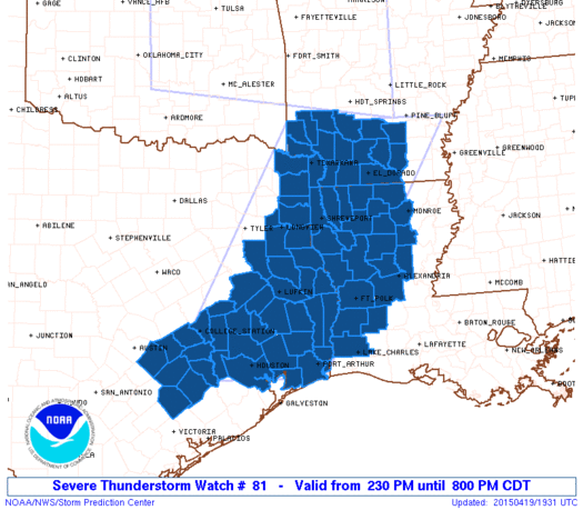 WATCH 81. PORTIONS OF THE ARKLATEX REGION TO THE ARKLAMISS REGION
