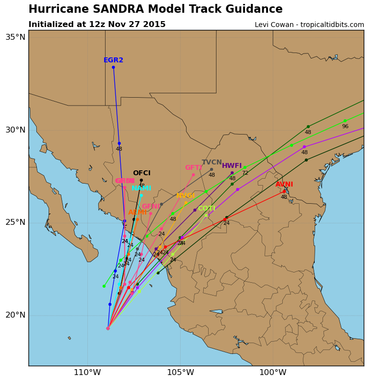 Happy Thanksgiving gang. Category 4 Hurricane Sandra is churning in the EPAC this morning as the modified Arctic Cold Front is advancing S across the Panhandle.