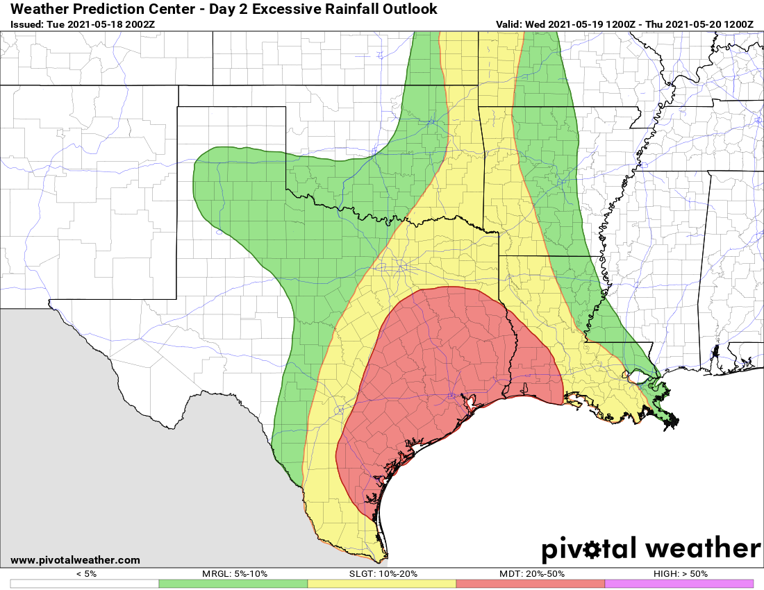 through Thursday morning. WPC has SE TX in a Moderate Risk for