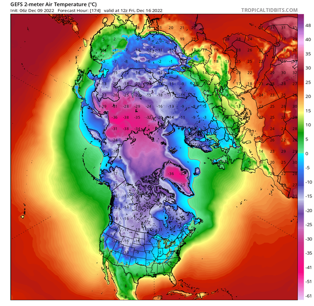 These are the temperatures the GEFS has over Siberia so we will be dealing with -30 to -40 air. This is an ensembles mean so extremes in either direction won't be represented.