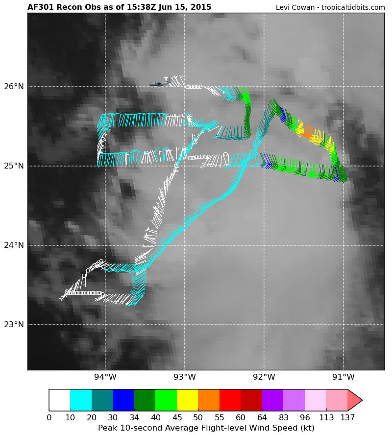 RECON headed back W for another pass. Looks like they are attempting to close of a center near the strong convection.