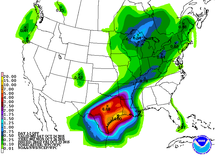 For the upcoming SE TX weather this weekend the Houston-Galveston NWS state it very well "Dangerous Major Storm Event To Move Through Southeast Texas This Weekend". Patricia's energy will combine with a surface low along the TX Coast resulting in flooding rains with high rainfall rates, coastal flooding, and winds that may reach TS force in gusts along the coast. Rainfall totals forecast to average 9-12" S of I-10 to the coast with higher amounts possible. This will be a non-tropical low but it will feel like a TS. This has all the parameters in place to be a very significant event. Very heavy flooding rains will be possible across STX, S Central TX, Central TX including the Hill Country, N Central TX, NTX, ETX, NW TX, and SW LA. NTX has already seen flooding today with Flash Flooding Warning's currently in effect. This is "Turn Around Don't Drown Weekend". More info through the weekend. Stay tuned and be weather aware.