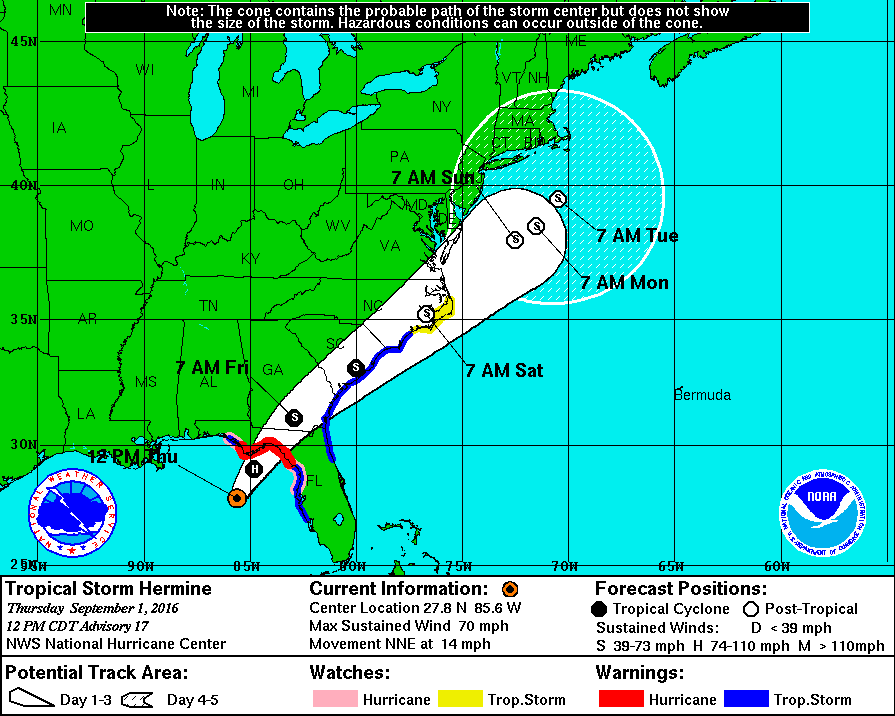 Thursday. On the forecast track, the center of Hermine will